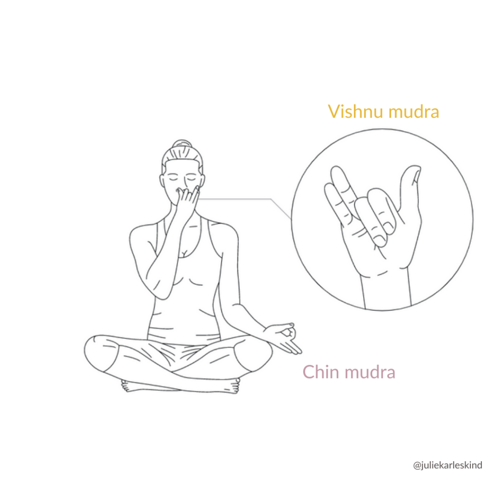 Traditionnellement on utilise la main droite pour pratiquer car en Inde la main gauche est impure. C’est notamment celle qu’on utilise pour aller aux toilettes. Mais si tu es gaucher ou gauchère pas de panique, tu peux utiliser ta main gauche pour boucher les narines.